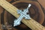Массивный крест из серебра 925 пробы выполнен в выразительном классическом стиле без распятия. Чёткая геометрия формы дополнена плавными декоративными элементами на концах перекладин, создающими визуальный баланс и подчёркивающими глубину рельефа. Контрастное чернение усиливает читаемость деталей и придаёт украшению благородный винтажный характер.